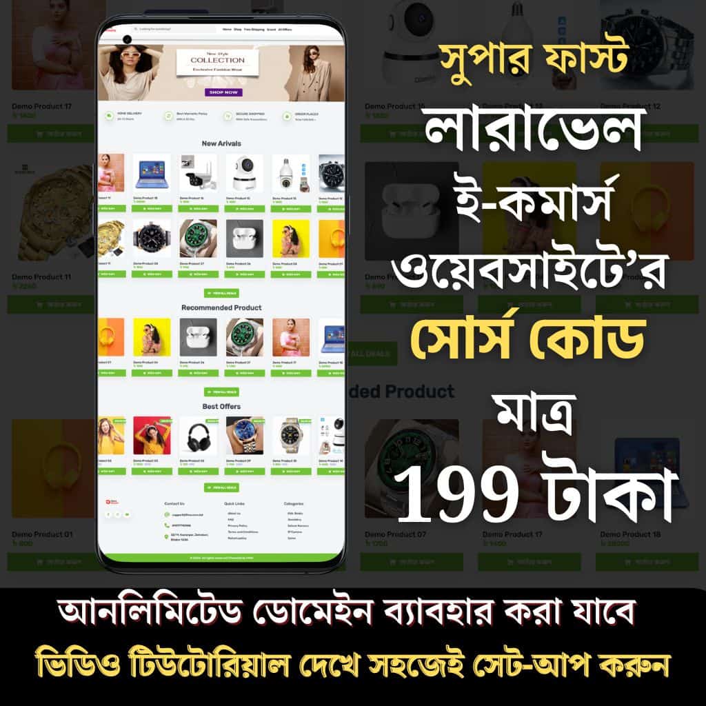 অন্যান্য ওয়েবসাইটের তুলনায় লারাভেল ই-কমার্স ওয়েবসাইটের লোডিং স্পীড বেশি হওয়ায়, সাইটে অর্ডার আসে কয়েক গুন বেশি। এই সোর্স কোড দিয়ে আপনি কোনো ডেভেলপারের সাহায্য ছাড়াই মাত্র ২০ মিনিটে ওয়েবসাইট-টি সেট-আপ করতে পারবেন।
